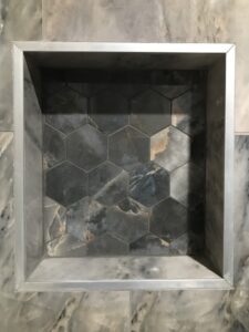 We recently had the opportunity to work on a beautiful shower tile project for a client which included several